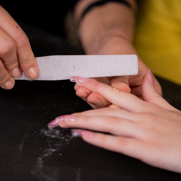 - Depois de secar, remove a unha e lixa na forma desejada.